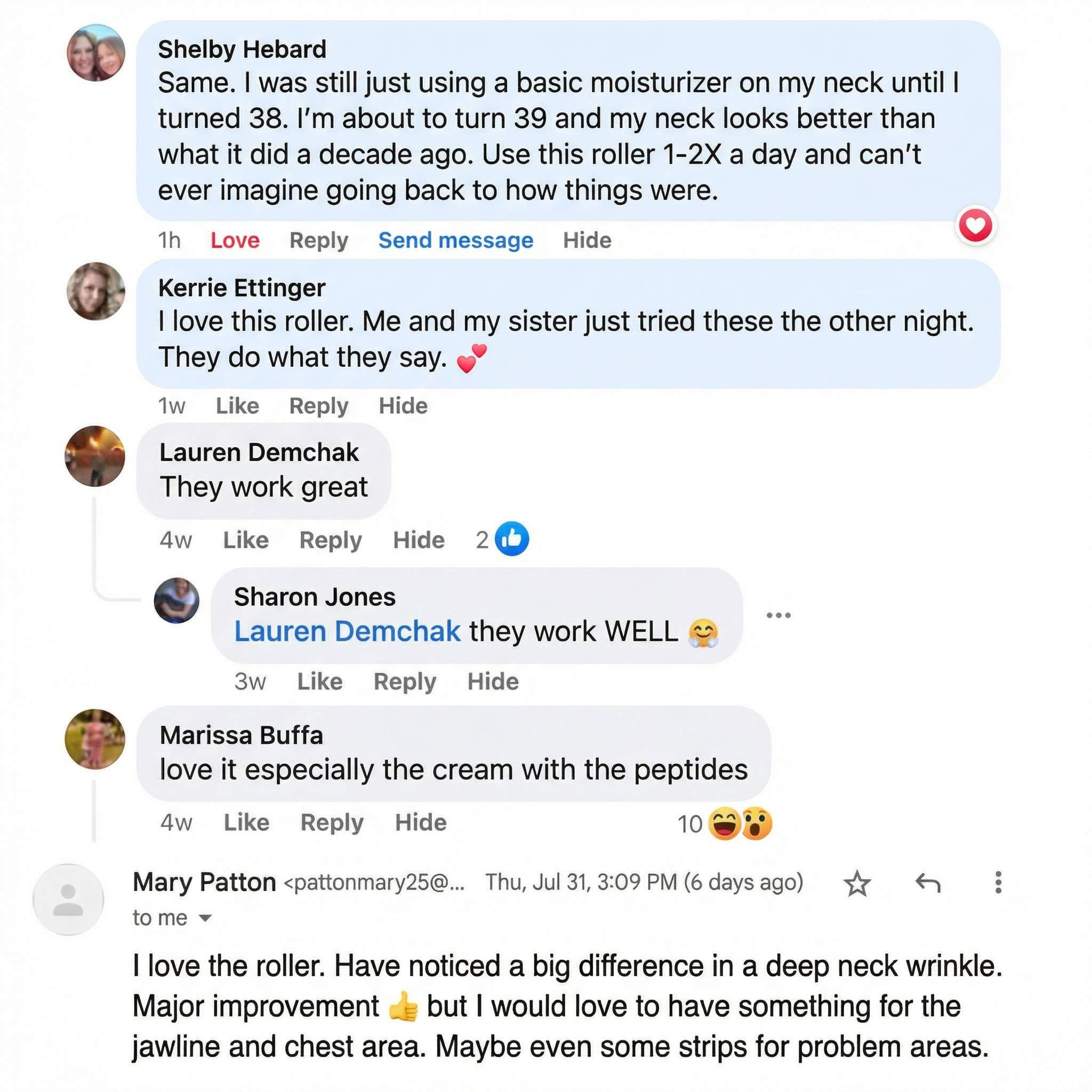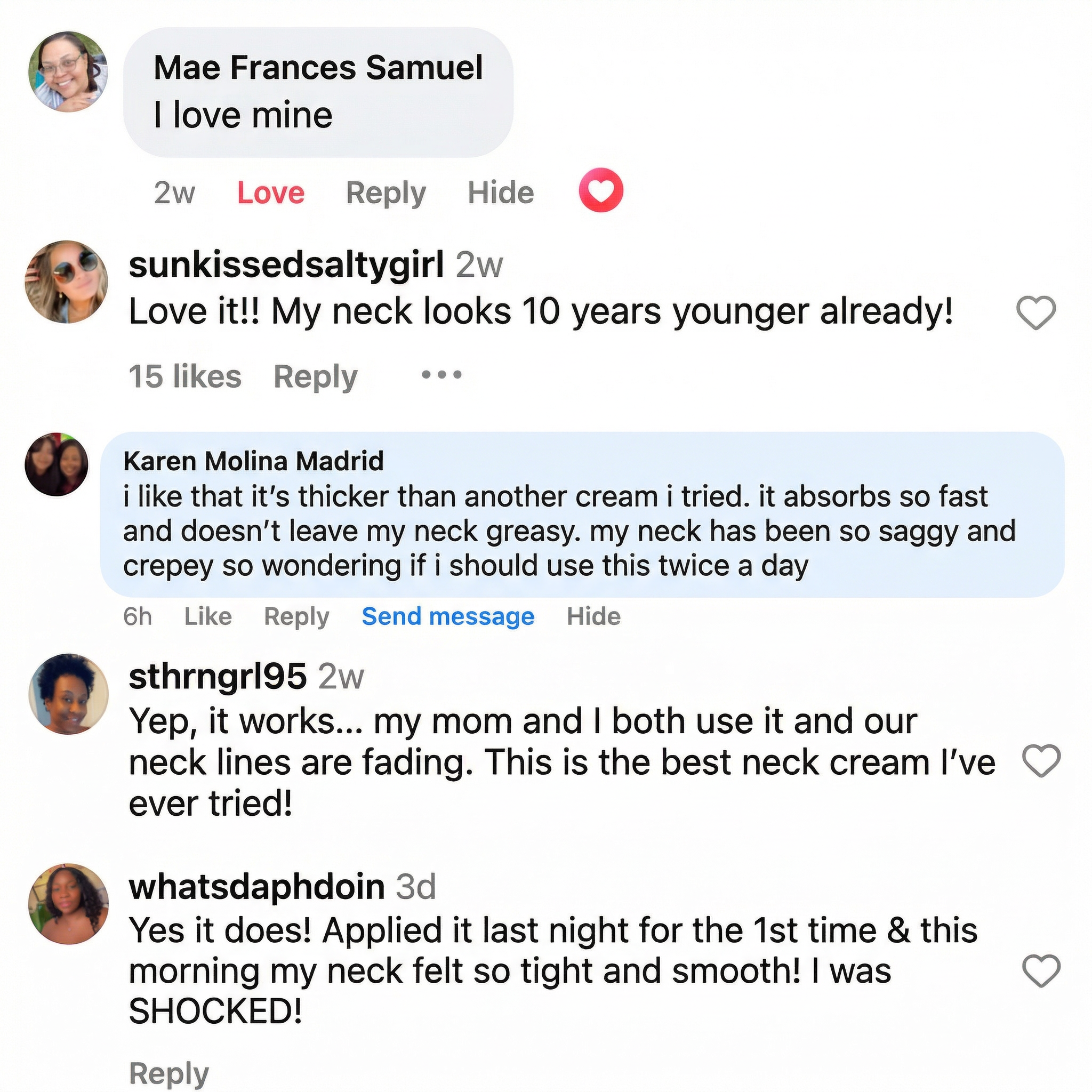 Lines, sagging, crepey texture — your neck has been aging faster than the rest of you, and no amount of moisturizer has fixed it. That's because most creams only hydrate the surface. They make your skin feel soft for an hour but don't actually tighten or lift anything.